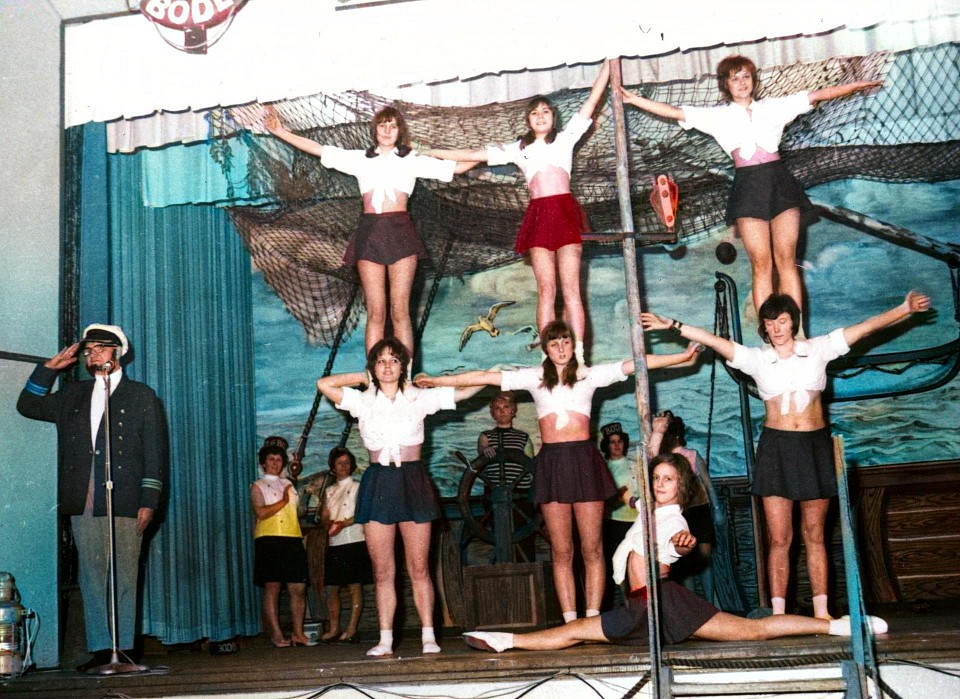 Der Staßfurter Männerchor war und ist eine feste Größe im Karneval der Bodestadt. Legendär sind die Prunksitzungen im Konzerthaus Klingsch, dass es heute leider nicht mehr gibt. Immer mittendrin im närrischen Treiben unser Klassenlehrer Heinrich Bassüner. Er sorgte nicht zuletzt dafür, dass einige unserer Mädel mit von der Partie waren.